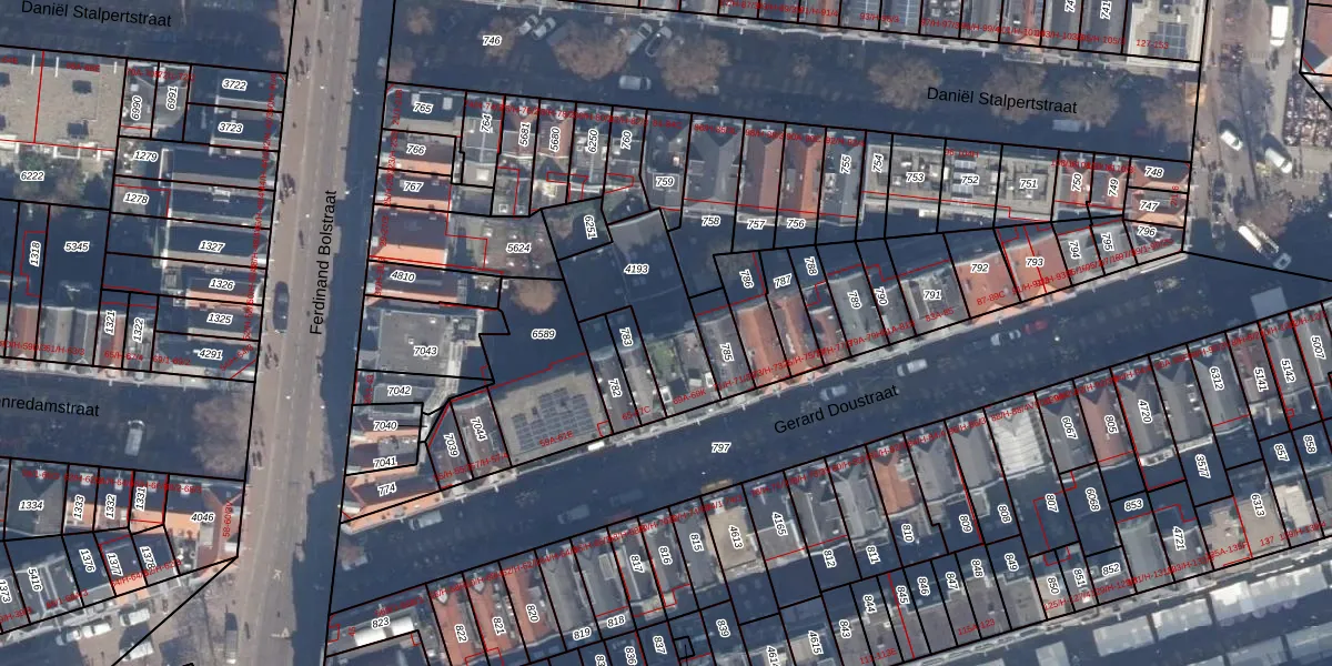 Het perceel waarop Gerard Doustraat 69-G staat heeft een oppervlakte van 337 m². Dit is een groot perceel. De perceeloppervlakte wordt geregistreerd door het Kadaster. Gedetailleerde informatie over de maten van dit perceel kunt u vinden in het rapport Kadastrale kaart met maatvoering van Gerard Doustraat 69-G.