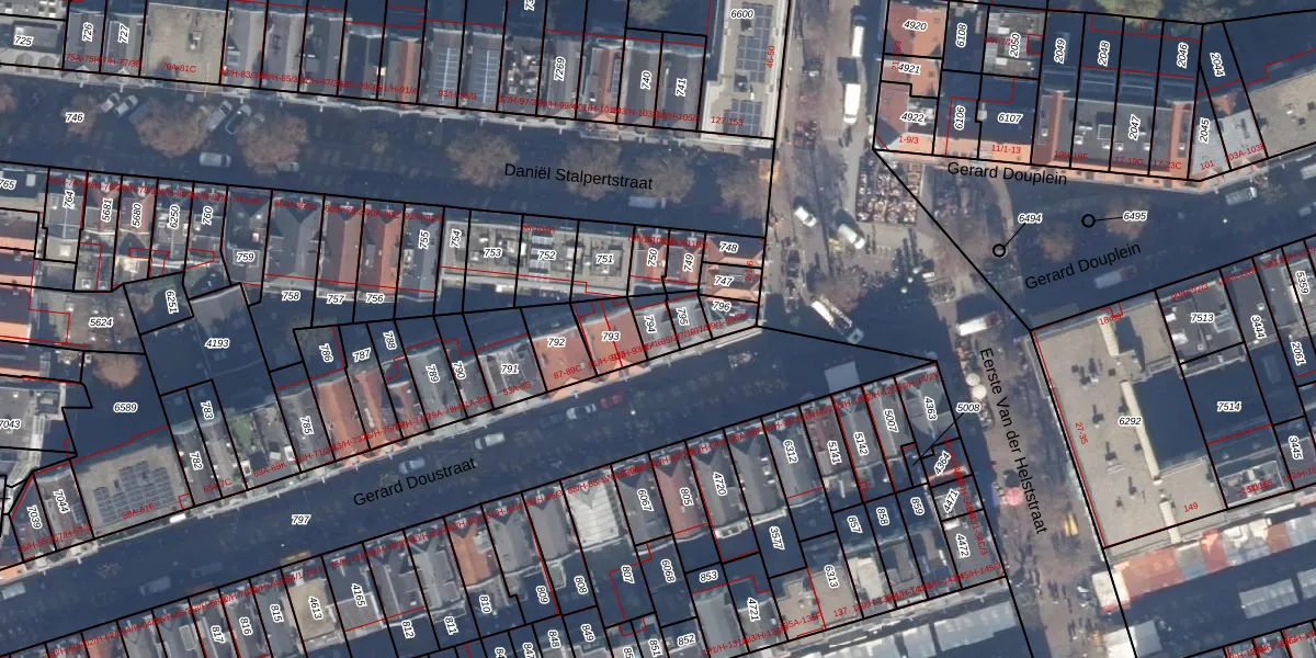 Het perceel waarop Gerard Doustraat 95-D staat heeft een oppervlakte van 52 m². Dit is een klein perceel. De perceeloppervlakte wordt geregistreerd door het Kadaster. Gedetailleerde informatie over de maten van dit perceel kunt u vinden in het rapport Kadastrale kaart met maatvoering van Gerard Doustraat 95-D.