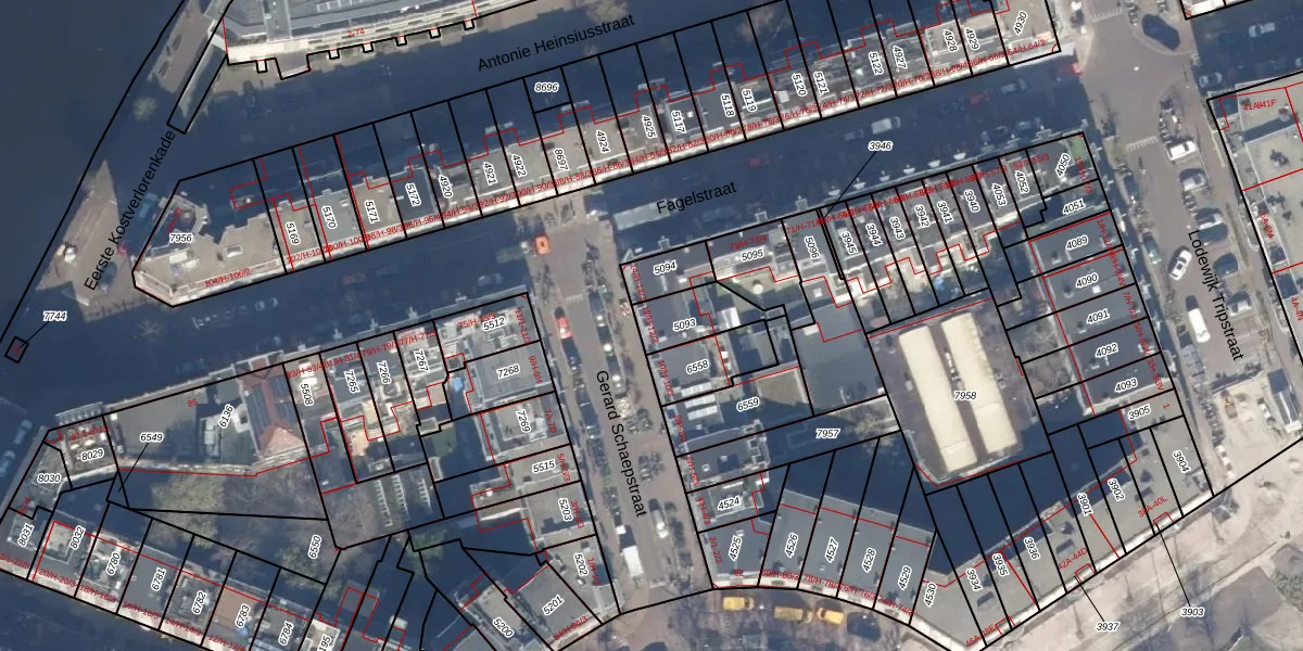 Het perceel waarop het adres ligt is ASD13-Q-5093. De afkorting 'ASD13' staat voor kadastrale gemeente Amsterdam. Het perceel is 139 m² groot. Dat is kleiner dan de gemiddelde perceeloppervlakte in Amsterdam, dat op 393,94 m² ligt. De grootste perceeloppervlakte in de kadastrale gemeente is 6,2 ha. De kleinste oppervlakte bedraagt 1 m². Op het perceel zijn 4 adressen aanwezig. De laatste wijziging in het de Basisregistratie Kadaster (BRK) was op 23-01-2007.