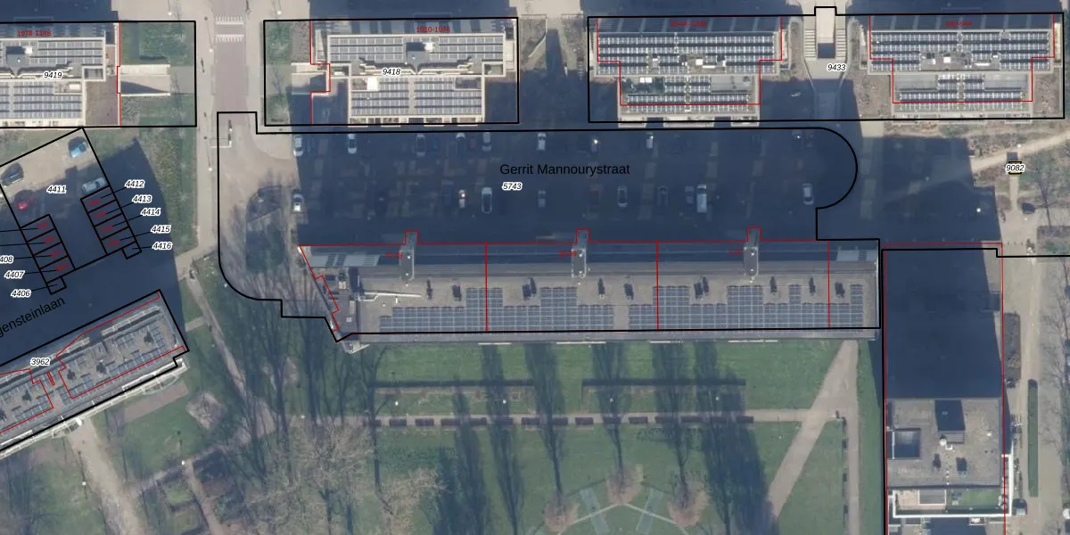 Het perceel waarop Gerrit Mannourystraat 45 staat heeft een oppervlakte van 4422 m². Dit is een zeer groot perceel. De perceeloppervlakte wordt geregistreerd door het Kadaster. Gedetailleerde informatie over de maten van dit perceel kunt u vinden in het rapport Kadastrale kaart met maatvoering van Gerrit Mannourystraat 45.
