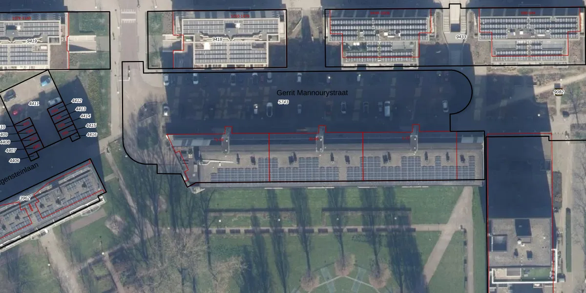 Het perceel waarop Gerrit Mannourystraat 46 staat heeft een oppervlakte van 4422 m². Dit is een zeer groot perceel. De perceeloppervlakte wordt geregistreerd door het Kadaster. Gedetailleerde informatie over de maten van dit perceel kunt u vinden in het rapport Kadastrale kaart met maatvoering van Gerrit Mannourystraat 46.