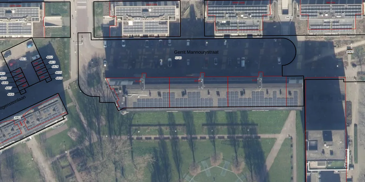 Het perceel waarop Gerrit Mannourystraat 49 staat heeft een oppervlakte van 4422 m². Dit is een zeer groot perceel. De perceeloppervlakte wordt geregistreerd door het Kadaster. Gedetailleerde informatie over de maten van dit perceel kunt u vinden in het rapport Kadastrale kaart met maatvoering van Gerrit Mannourystraat 49.