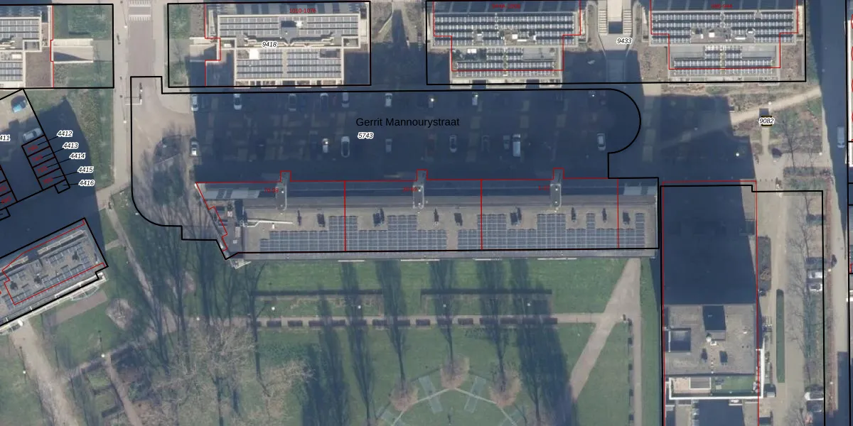 Het perceel waarop Gerrit Mannourystraat 57 staat heeft een oppervlakte van 4422 m². Dit is een zeer groot perceel. De perceeloppervlakte wordt geregistreerd door het Kadaster. Gedetailleerde informatie over de maten van dit perceel kunt u vinden in het rapport Kadastrale kaart met maatvoering van Gerrit Mannourystraat 57.