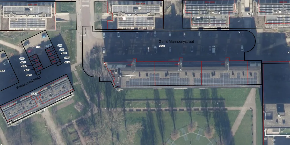 Het perceel waarop Gerrit Mannourystraat 95 staat heeft een oppervlakte van 4422 m². Dit is een zeer groot perceel. De perceeloppervlakte wordt geregistreerd door het Kadaster. Gedetailleerde informatie over de maten van dit perceel kunt u vinden in het rapport Kadastrale kaart met maatvoering van Gerrit Mannourystraat 95.