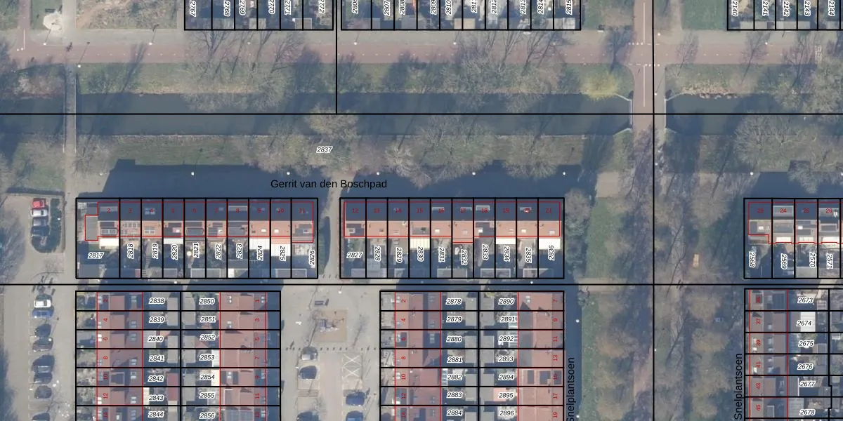 Gerrit van den Boschpad 15 is gelegen op kadastraal perceel WPK02L2830. Deze kadastrale aanduiding is uniek en wordt gebruikt door het Kadaster om eigendomsrechten en andere zakelijke rechten vast te leggen. Het perceel maakt onderdeel uit van de kadastrale gemeente Weesperkarspel.