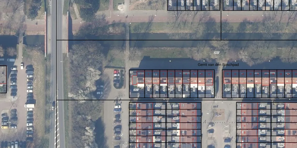 Gerrit van den Boschpad 3 is gelegen op kadastraal perceel WPK02L2818. Deze kadastrale aanduiding is uniek en wordt gebruikt door het Kadaster om eigendomsrechten en andere zakelijke rechten vast te leggen. Het perceel maakt onderdeel uit van de kadastrale gemeente Weesperkarspel.