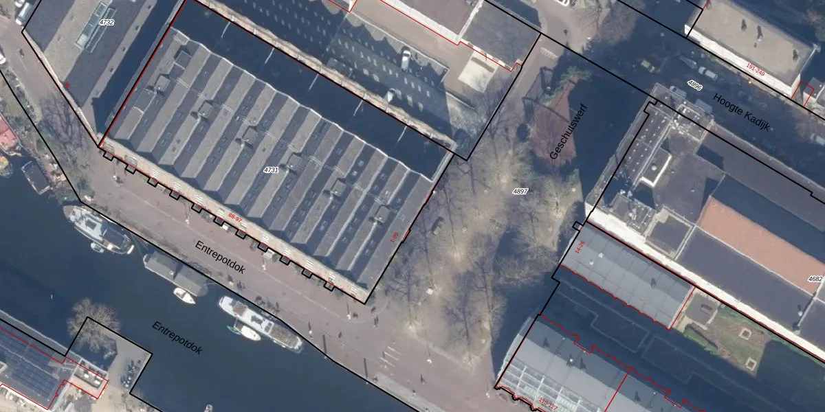 Het adres is gelegen op perceel 4731 in de sectie O en de kadastrale gemeente Amsterdam. De kadastrale aanduiding is aldus ASD11-O-4731. De gemiddelde perceeloppervlakte in de kadastrale gemeente Amsterdam is 781,11 m². Dit perceel is met zijn 3238 m² dus groter dan gemiddeld. De grootste perceeloppervlakte in de kadastrale gemeente is 12,0 ha. De kleinste oppervlakte bedraagt 1 m². Op het perceel zijn 56 adressen aanwezig. In de Basisregistratie Kadaster (BRK) werden de grenzen van het perceel geregistreerd op 02-12-2004.