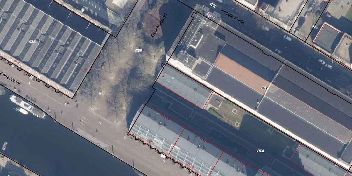 Geschutswerf 14 is gelegen op kadastraal perceel ASD11O4714. Deze kadastrale aanduiding is uniek en wordt gebruikt door het Kadaster om eigendomsrechten en andere zakelijke rechten vast te leggen. Het perceel maakt onderdeel uit van de kadastrale gemeente Amsterdam.