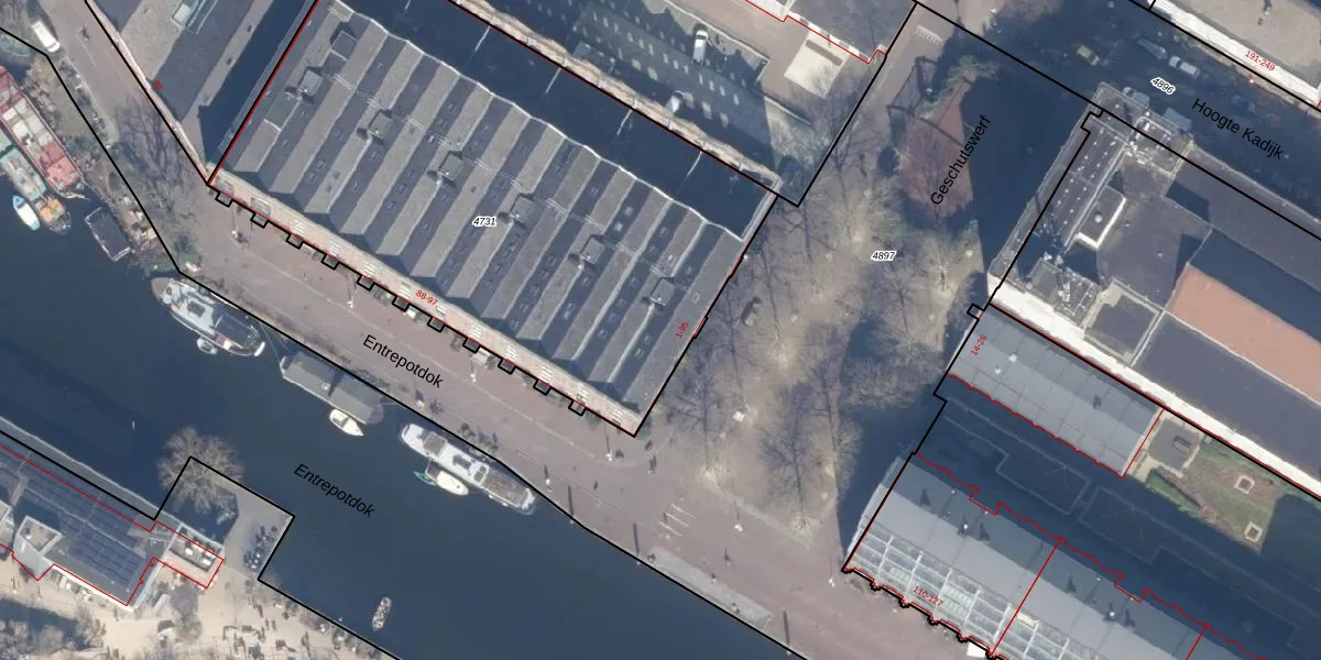 Het perceel waarop het adres ligt is ASD11-O-4731. De afkorting 'ASD11' staat voor kadastrale gemeente Amsterdam. De gemiddelde perceeloppervlakte in de kadastrale gemeente Amsterdam is 781,11 m². Dit perceel is met zijn 3238 m² dus groter dan gemiddeld. Het grootste perceel in de kadastrale gemeente is 12,0 ha. Het kleinste perceel heeft een oppervlakte van 1 m². Op het perceel liggen in totaal 56 adressen. In de Basisregistratie Kadaster (BRK) werden de grenzen van het perceel geregistreerd op 02-12-2004.