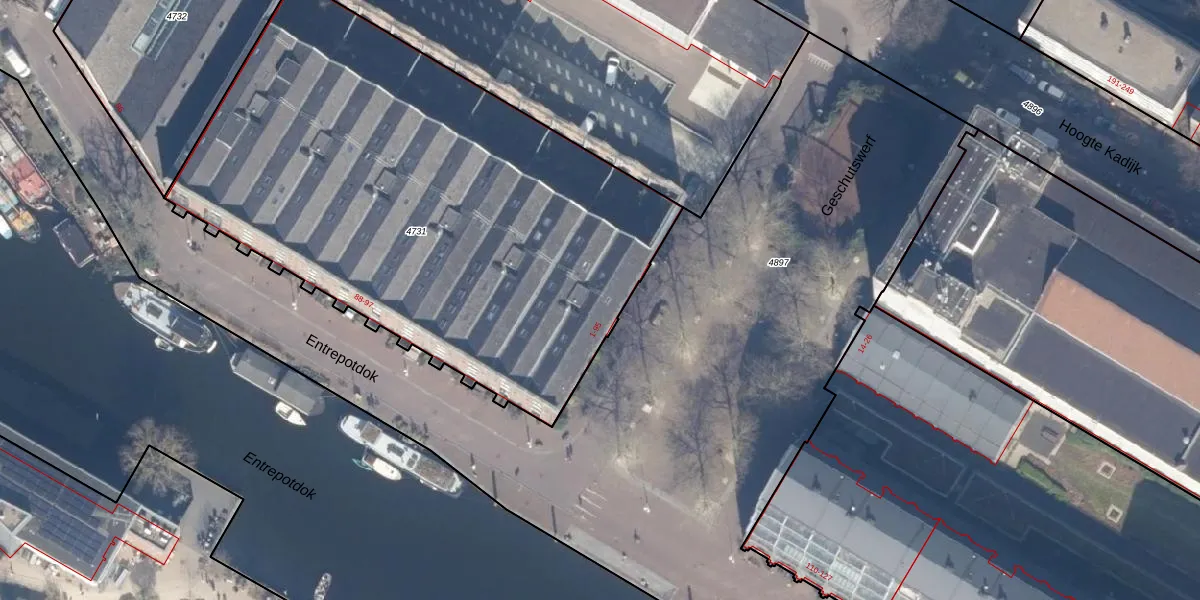 Het perceel waarop het adres ligt is ASD11-O-4731. De afkorting 'ASD11' staat voor kadastrale gemeente Amsterdam. De gemiddelde perceeloppervlakte in de kadastrale gemeente Amsterdam is 781,11 m². Dit perceel is met zijn 3238 m² dus groter dan gemiddeld. Het grootste perceel in de kadastrale gemeente is 12,0 ha. Het kleinste perceel heeft een oppervlakte van 1 m². Op het perceel zijn 56 adressen aanwezig. De huidige grenzen van het perceel zijn digitaal in de Basisregistratie Kadaster (BRK) geregistreerd op 02-12-2004.