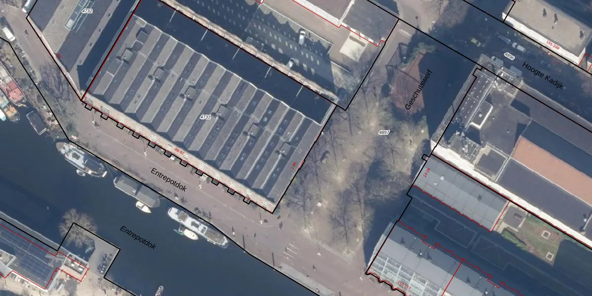 Geschutswerf 45 is gelegen op kadastraal perceel ASD11O4731. Deze kadastrale aanduiding is uniek en wordt gebruikt door het Kadaster om eigendomsrechten en andere zakelijke rechten vast te leggen. Het perceel maakt onderdeel uit van de kadastrale gemeente Amsterdam.