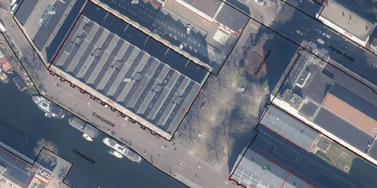 Het perceel waarop het adres ligt is ASD11-O-4731. De afkorting 'ASD11' staat voor kadastrale gemeente Amsterdam. De gemiddelde perceeloppervlakte in de kadastrale gemeente Amsterdam is 781,11 m². Dit perceel is met zijn 3238 m² dus groter dan gemiddeld. Het kleinste perceel in de kadastrale gemeente is 1 m² groot. De grootste perceeloppervlakte is 12,0 ha. Op het perceel liggen in totaal 56 adressen. In de Basisregistratie Kadaster (BRK) werden de grenzen van het perceel geregistreerd op 02-12-2004.