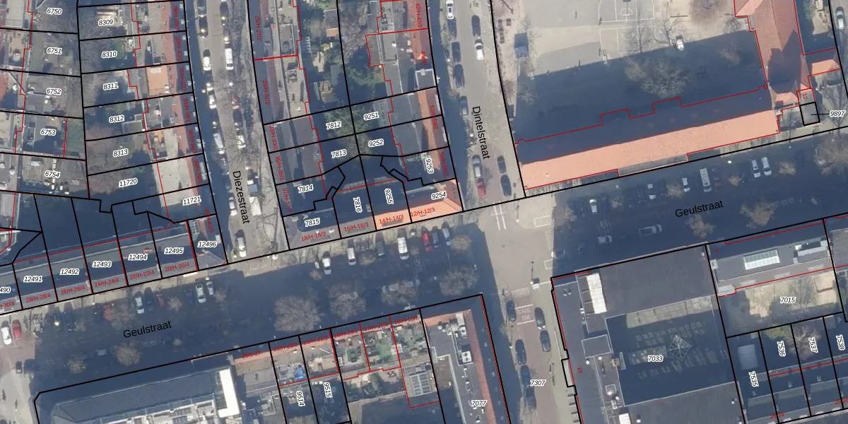 Geulstraat 12-2 is gelegen op kadastraal perceel ASD18V9254. Deze kadastrale aanduiding is uniek en wordt gebruikt door het Kadaster om eigendomsrechten en andere zakelijke rechten vast te leggen. Het perceel maakt onderdeel uit van de kadastrale gemeente Amsterdam.