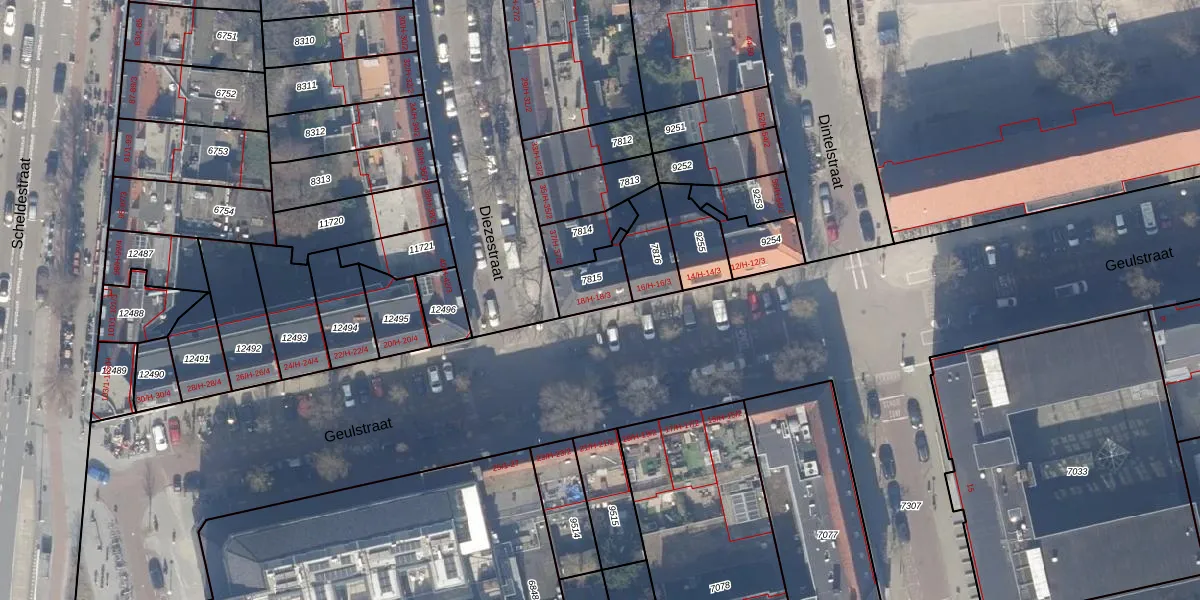 Geulstraat 18-3 is gelegen op kadastraal perceel ASD18V7815. Deze kadastrale aanduiding is uniek en wordt gebruikt door het Kadaster om eigendomsrechten en andere zakelijke rechten vast te leggen. Het perceel maakt onderdeel uit van de kadastrale gemeente Amsterdam.