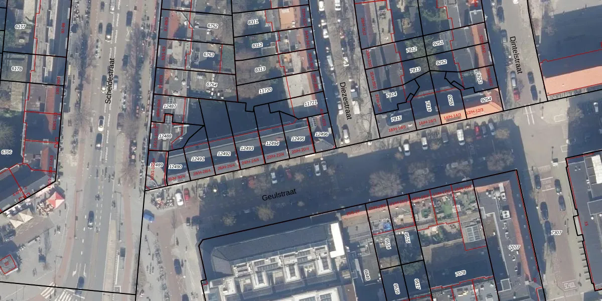 Geulstraat 20-H is gelegen op kadastraal perceel ASD18V12495. Deze kadastrale aanduiding is uniek en wordt gebruikt door het Kadaster om eigendomsrechten en andere zakelijke rechten vast te leggen. Het perceel maakt onderdeel uit van de kadastrale gemeente Amsterdam.