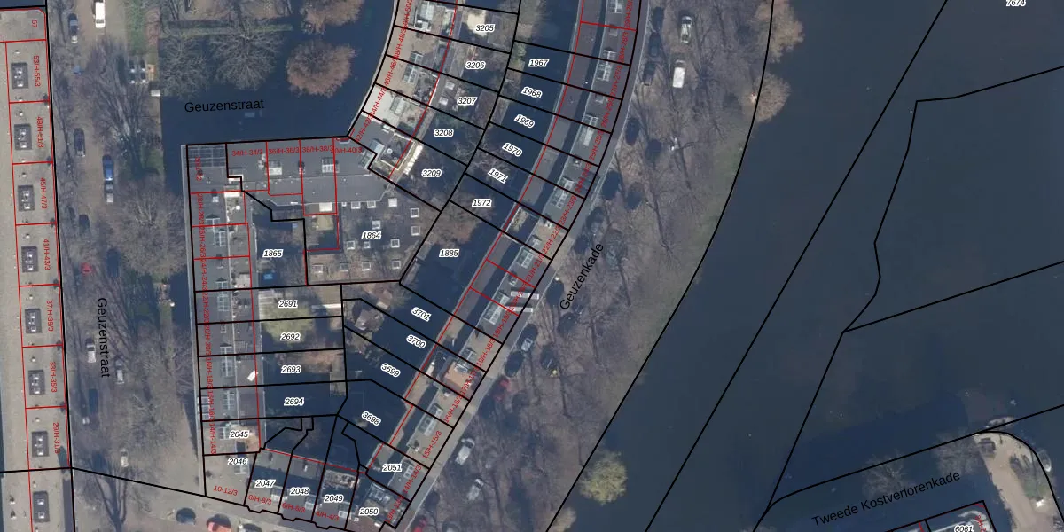 Geuzenkade 21-H is gelegen op kadastraal perceel STN02L1885. Deze kadastrale aanduiding is uniek en wordt gebruikt door het Kadaster om eigendomsrechten en andere zakelijke rechten vast te leggen. Het perceel maakt onderdeel uit van de kadastrale gemeente Sloten Noord-Holland.