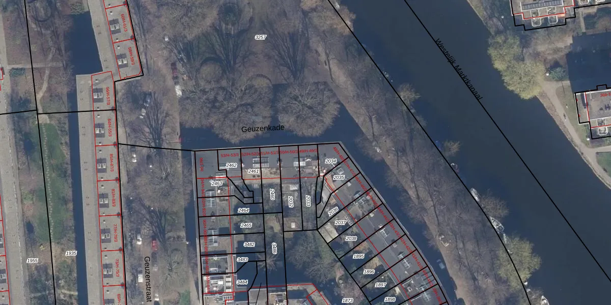 Geuzenkade 49-H is gelegen op kadastraal perceel STN02L2033. Deze kadastrale aanduiding is uniek en wordt gebruikt door het Kadaster om eigendomsrechten en andere zakelijke rechten vast te leggen. Het perceel maakt onderdeel uit van de kadastrale gemeente Sloten Noord-Holland.