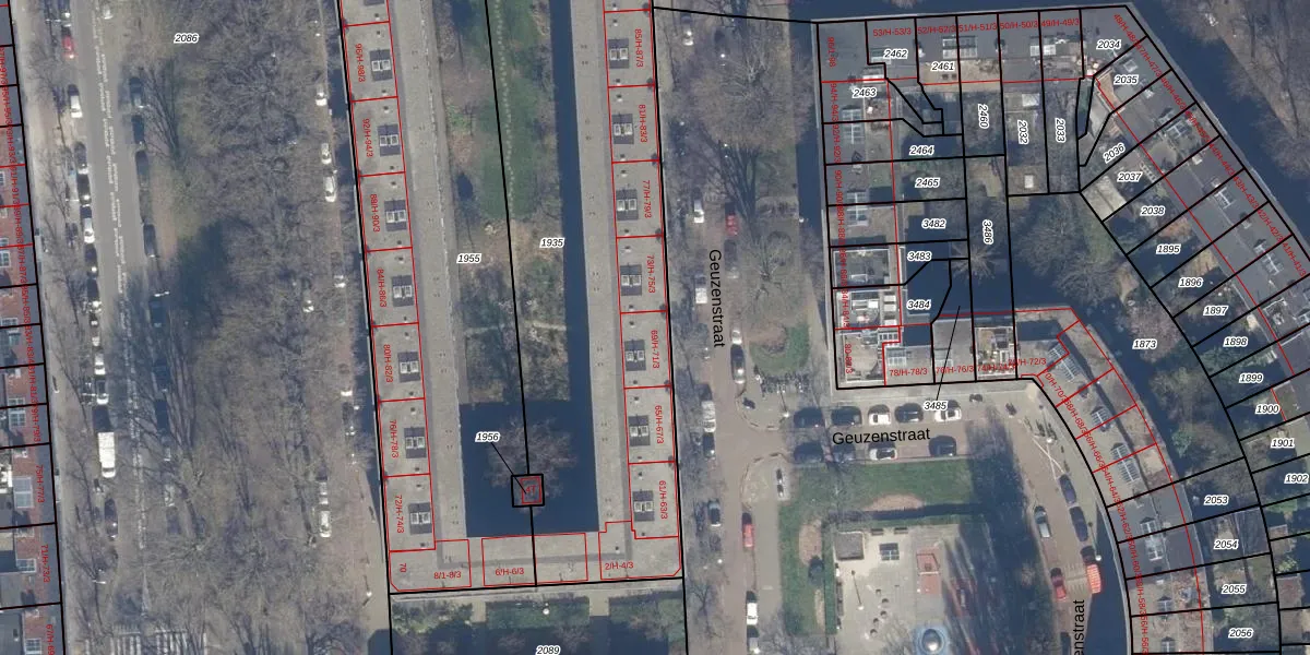 Het perceel waarop Geuzenstraat 71-H staat heeft een oppervlakte van 2322 m². Dit is een zeer groot perceel. De perceeloppervlakte wordt geregistreerd door het Kadaster. Gedetailleerde informatie over de maten van dit perceel kunt u vinden in het rapport Kadastrale kaart met maatvoering van Geuzenstraat 71-H.