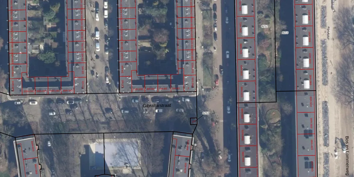 Het perceel waarop Gibraltarstraat 4-2 staat heeft een oppervlakte van 5768 m². Dit is een zeer groot perceel. De perceeloppervlakte wordt geregistreerd door het Kadaster. Gedetailleerde informatie over de maten van dit perceel kunt u vinden in het rapport Kadastrale kaart met maatvoering van Gibraltarstraat 4-2.