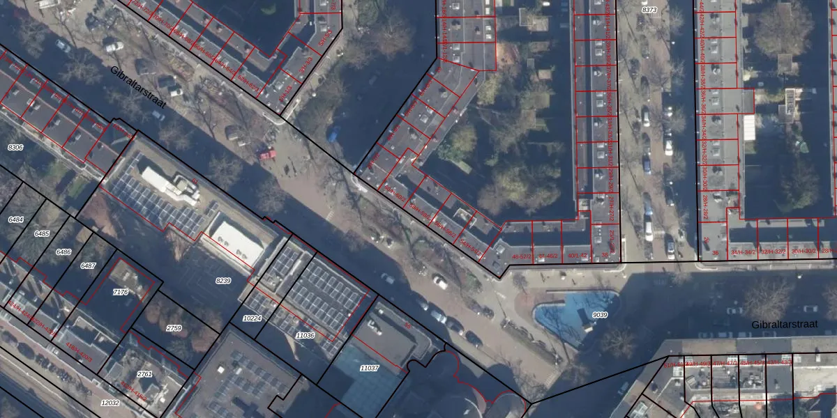 Het perceel waarop Gibraltarstraat 58-1 staat heeft een oppervlakte van 5791 m². Dit is een zeer groot perceel. De perceeloppervlakte wordt geregistreerd door het Kadaster. Gedetailleerde informatie over de maten van dit perceel kunt u vinden in het rapport Kadastrale kaart met maatvoering van Gibraltarstraat 58-1.