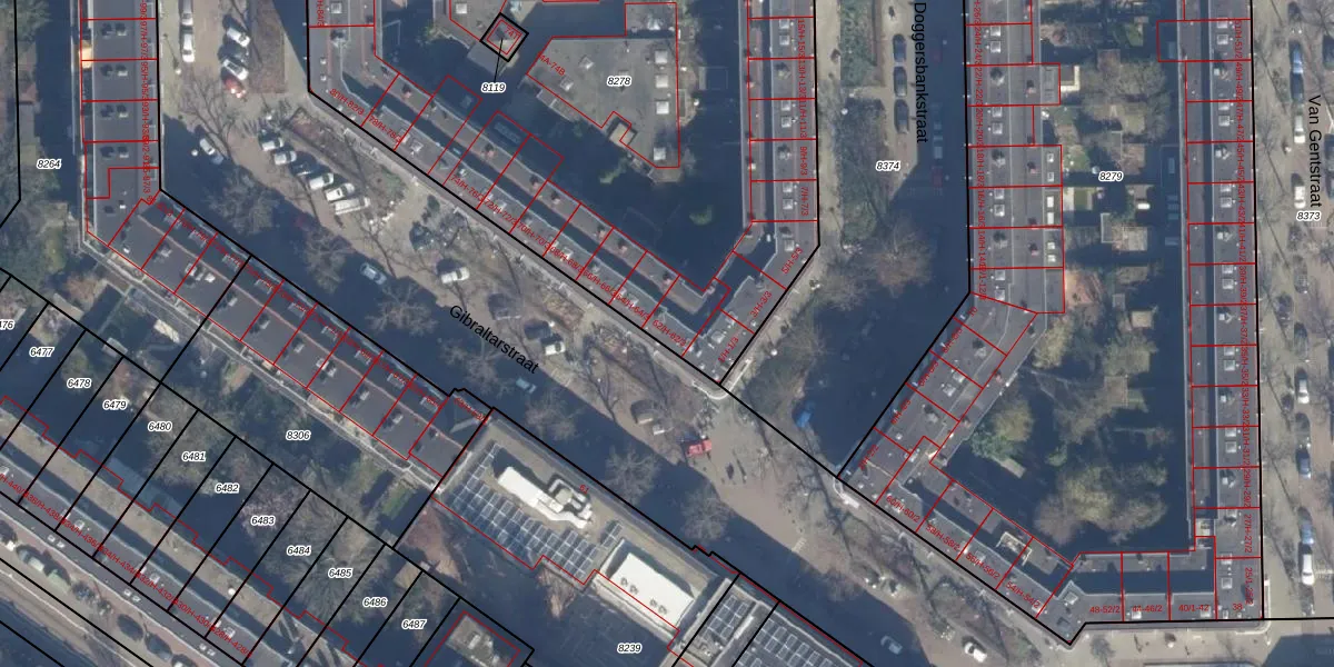 Het perceel waarop Gibraltarstraat 62-1 staat heeft een oppervlakte van 5151 m². Dit is een zeer groot perceel. De perceeloppervlakte wordt geregistreerd door het Kadaster. Gedetailleerde informatie over de maten van dit perceel kunt u vinden in het rapport Kadastrale kaart met maatvoering van Gibraltarstraat 62-1.