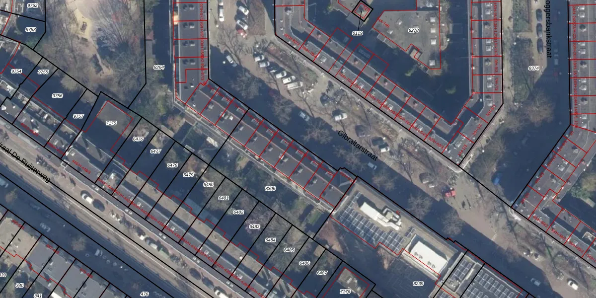 Het perceel waarop Gibraltarstraat 69-3 staat heeft een oppervlakte van 1018 m². Dit is een zeer groot perceel. De perceeloppervlakte wordt geregistreerd door het Kadaster. Gedetailleerde informatie over de maten van dit perceel kunt u vinden in het rapport Kadastrale kaart met maatvoering van Gibraltarstraat 69-3.