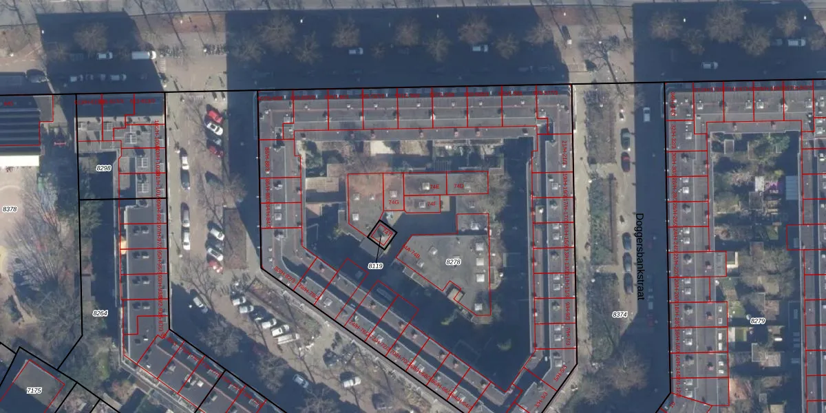 Het perceel waarop Gibraltarstraat 74-F staat heeft een oppervlakte van 5151 m². Dit is een zeer groot perceel. De perceeloppervlakte wordt geregistreerd door het Kadaster. Gedetailleerde informatie over de maten van dit perceel kunt u vinden in het rapport Kadastrale kaart met maatvoering van Gibraltarstraat 74-F.