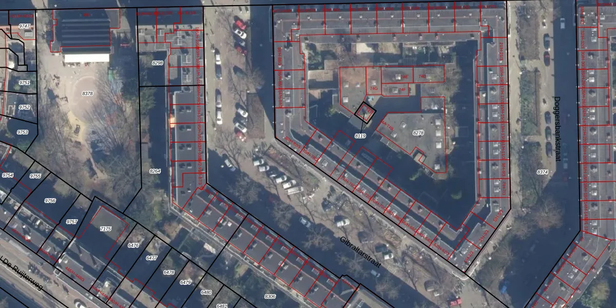 Het perceel waarop Gibraltarstraat 78-2 staat heeft een oppervlakte van 5151 m². Dit is een zeer groot perceel. De perceeloppervlakte wordt geregistreerd door het Kadaster. Gedetailleerde informatie over de maten van dit perceel kunt u vinden in het rapport Kadastrale kaart met maatvoering van Gibraltarstraat 78-2.