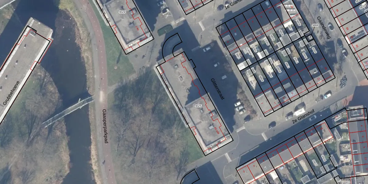 Glitterstraat 116 is gelegen op kadastraal perceel WPK02L9025. Deze kadastrale aanduiding is uniek en wordt gebruikt door het Kadaster om eigendomsrechten en andere zakelijke rechten vast te leggen. Het perceel maakt onderdeel uit van de kadastrale gemeente Weesperkarspel.