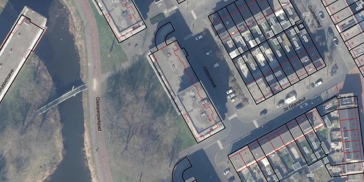 Glitterstraat 128 is gelegen op kadastraal perceel WPK02L9025. Deze kadastrale aanduiding is uniek en wordt gebruikt door het Kadaster om eigendomsrechten en andere zakelijke rechten vast te leggen. Het perceel maakt onderdeel uit van de kadastrale gemeente Weesperkarspel.