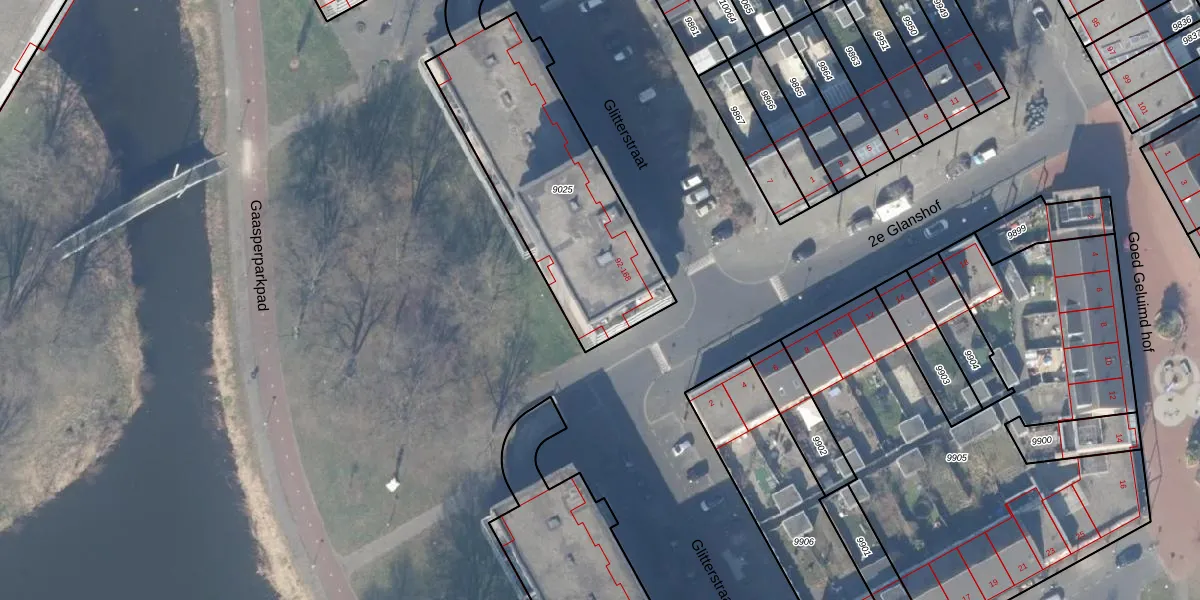 Glitterstraat 164 is gelegen op kadastraal perceel WPK02L9025. Deze kadastrale aanduiding is uniek en wordt gebruikt door het Kadaster om eigendomsrechten en andere zakelijke rechten vast te leggen. Het perceel maakt onderdeel uit van de kadastrale gemeente Weesperkarspel.