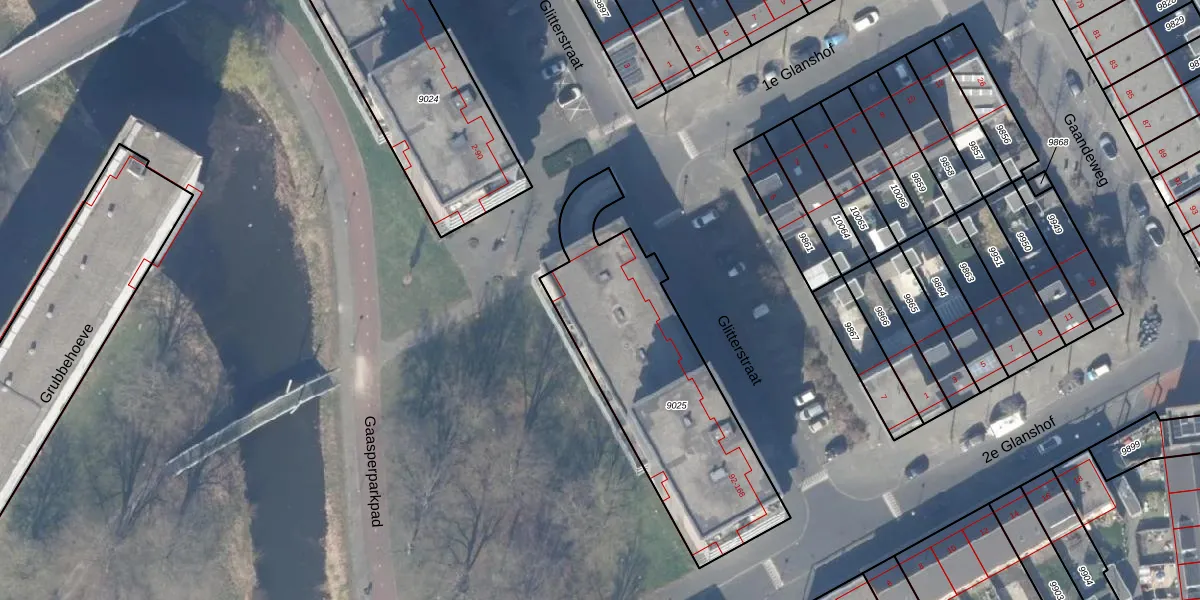 Glitterstraat 98 is gelegen op kadastraal perceel WPK02L9025. Deze kadastrale aanduiding is uniek en wordt gebruikt door het Kadaster om eigendomsrechten en andere zakelijke rechten vast te leggen. Het perceel maakt onderdeel uit van de kadastrale gemeente Weesperkarspel.