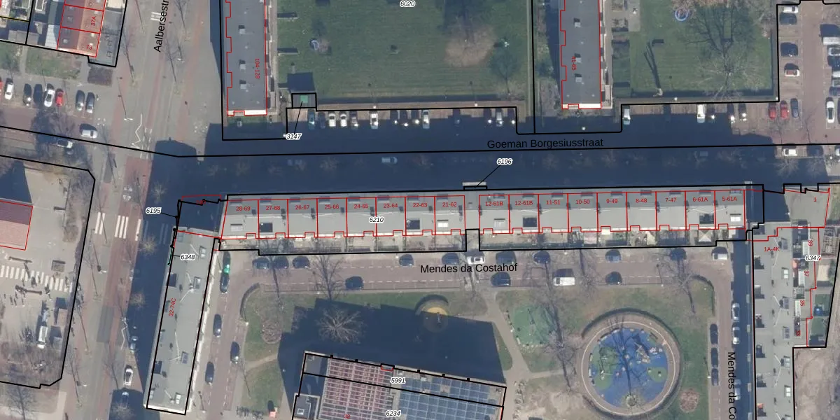 Het perceel waarop Goeman Borgesiusstraat 22 staat heeft een oppervlakte van 2307 m². Dit is een zeer groot perceel. De perceeloppervlakte wordt geregistreerd door het Kadaster. Gedetailleerde informatie over de maten van dit perceel kunt u vinden in het rapport Kadastrale kaart met maatvoering van Goeman Borgesiusstraat 22.