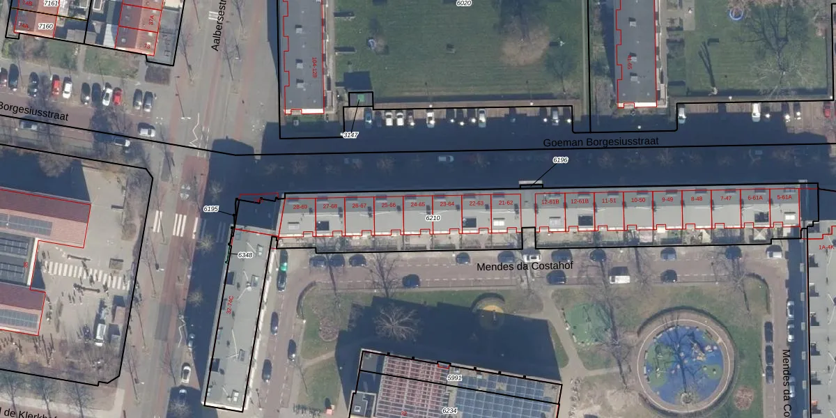 Het perceel waarop Goeman Borgesiusstraat 24 staat heeft een oppervlakte van 2307 m². Dit is een zeer groot perceel. De perceeloppervlakte wordt geregistreerd door het Kadaster. Gedetailleerde informatie over de maten van dit perceel kunt u vinden in het rapport Kadastrale kaart met maatvoering van Goeman Borgesiusstraat 24.