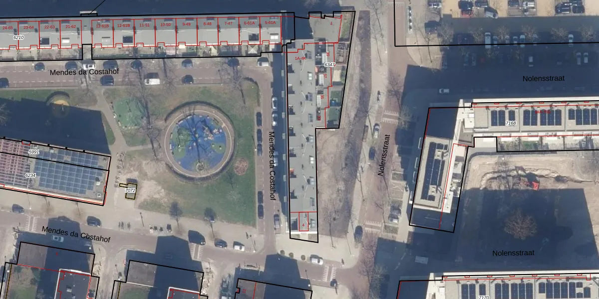 Het adres is gelegen op perceel 6347 in de sectie I en de kadastrale gemeente Sloten Noord-Holland. De kadastrale aanduiding is aldus STN02-I-6347. Het perceel is kleiner dan gemiddeld in Sloten Noord-Holland. Het perceel is 1086 m² groot, terwijl het gemiddelde ligt op 2098,84 m². De grootste perceeloppervlakte in de kadastrale gemeente is 1,05 km². De kleinste oppervlakte bedraagt 0 m². Op het perceel liggen in totaal 42 adressen. De huidige grenzen van het perceel zijn digitaal in de Basisregistratie Kadaster (BRK) geregistreerd op 13-02-2019.