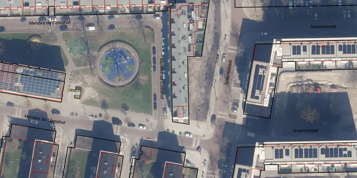 Het adres is gelegen op perceel 6347 in de sectie I en de kadastrale gemeente Sloten Noord-Holland. De kadastrale aanduiding is aldus STN02-I-6347. Het perceel is kleiner dan gemiddeld in Sloten Noord-Holland. Het perceel is 1086 m² groot, terwijl het gemiddelde ligt op 2098,84 m². De grootste perceeloppervlakte in de kadastrale gemeente is 1,05 km². De kleinste oppervlakte bedraagt 0 m². Op het perceel liggen in totaal 42 adressen. In de Basisregistratie Kadaster (BRK) werden de grenzen van het perceel geregistreerd op 13-02-2019.