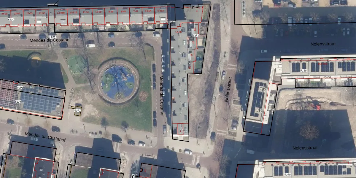 Het adres is gelegen op perceel 6347 in de sectie I en de kadastrale gemeente Sloten Noord-Holland. De kadastrale aanduiding is aldus STN02-I-6347. Het perceel is kleiner dan gemiddeld in Sloten Noord-Holland. Het perceel is 1086 m² groot, terwijl het gemiddelde ligt op 2098,84 m². De grootste perceeloppervlakte in de kadastrale gemeente is 1,05 km². De kleinste oppervlakte bedraagt 0 m². Er zijn 42 adressen aanwezig op het perceel. De huidige grenzen van het perceel zijn digitaal in de Basisregistratie Kadaster (BRK) geregistreerd op 13-02-2019.