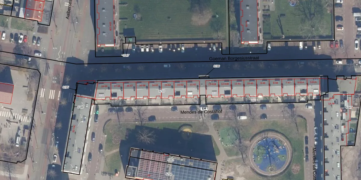 Het perceel waarop Goeman Borgesiusstraat 54 staat heeft een oppervlakte van 2307 m². Dit is een zeer groot perceel. De perceeloppervlakte wordt geregistreerd door het Kadaster. Gedetailleerde informatie over de maten van dit perceel kunt u vinden in het rapport Kadastrale kaart met maatvoering van Goeman Borgesiusstraat 54.