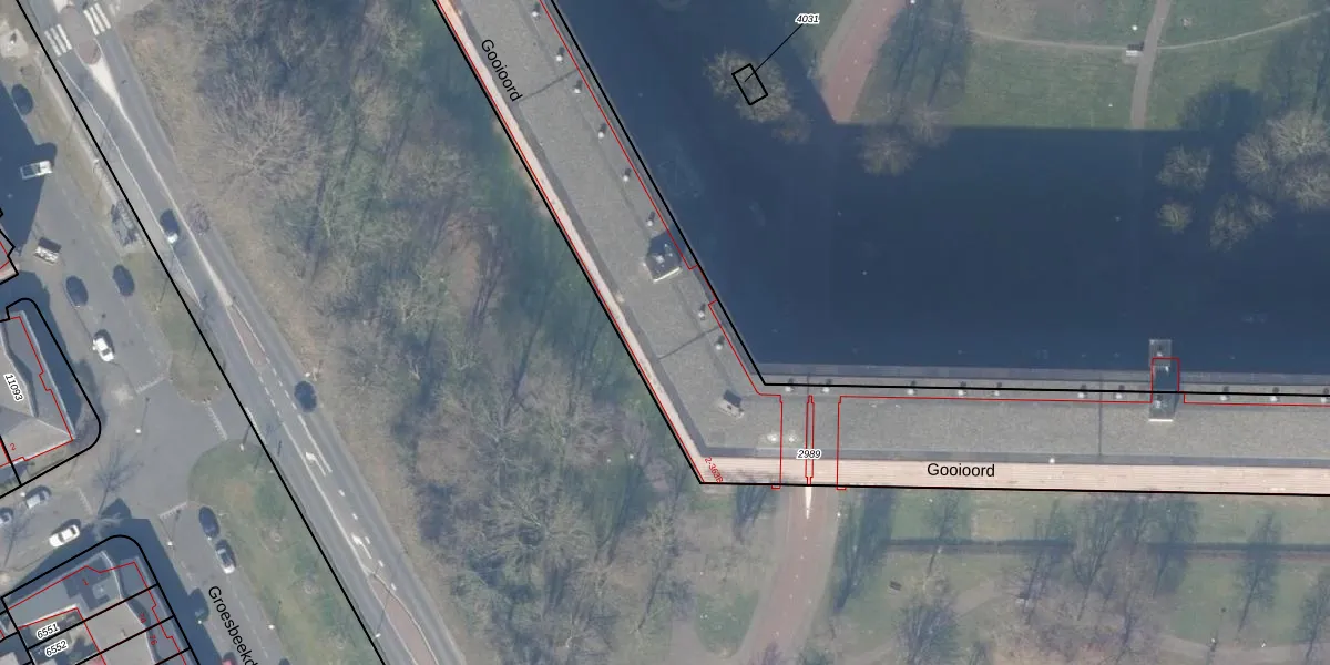 Het perceel waarop Gooioord 151 staat heeft een oppervlakte van 4880 m². Dit is een zeer groot perceel. De perceeloppervlakte wordt geregistreerd door het Kadaster. Gedetailleerde informatie over de maten van dit perceel kunt u vinden in het rapport Kadastrale kaart met maatvoering van Gooioord 151.