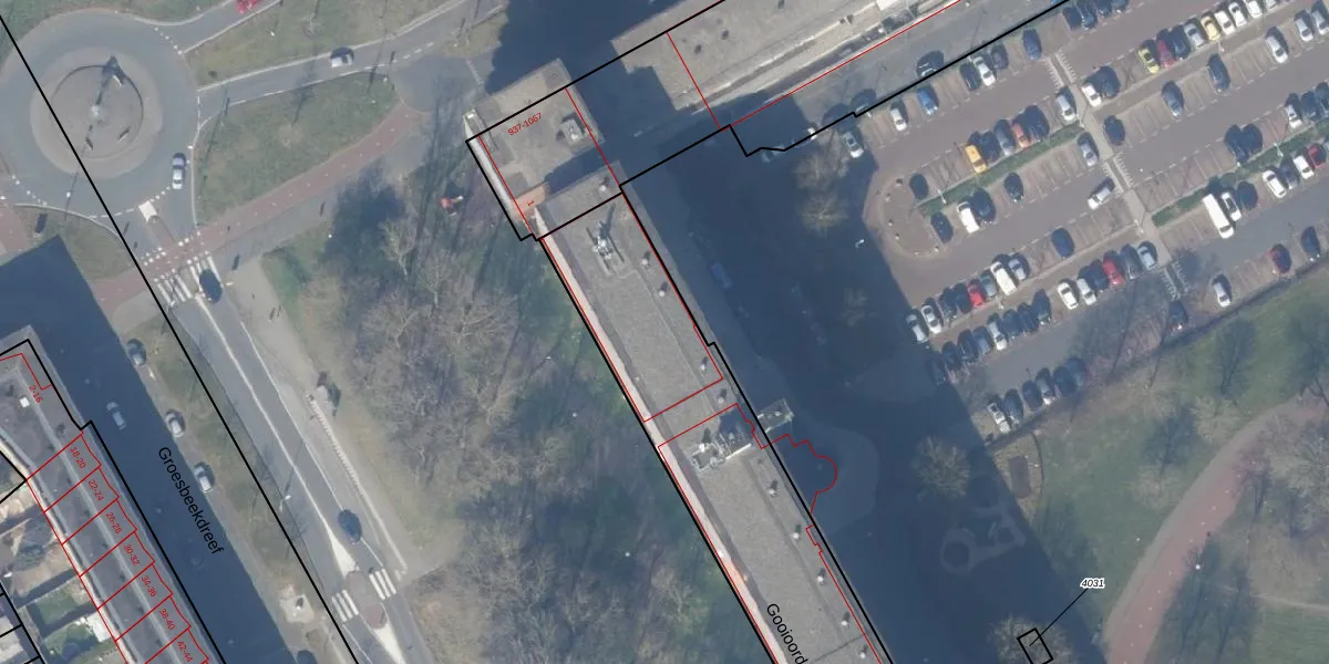 Het perceel waarop Gooioord 4 staat heeft een oppervlakte van 4880 m². Dit is een zeer groot perceel. De perceeloppervlakte wordt geregistreerd door het Kadaster. Gedetailleerde informatie over de maten van dit perceel kunt u vinden in het rapport Kadastrale kaart met maatvoering van Gooioord 4.