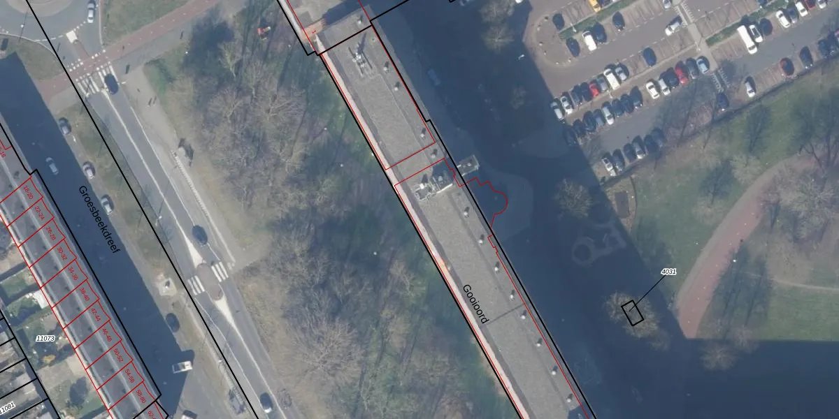 Het perceel waarop Gooioord 47-A staat heeft een oppervlakte van 4880 m². Dit is een zeer groot perceel. De perceeloppervlakte wordt geregistreerd door het Kadaster. Gedetailleerde informatie over de maten van dit perceel kunt u vinden in het rapport Kadastrale kaart met maatvoering van Gooioord 47-A.