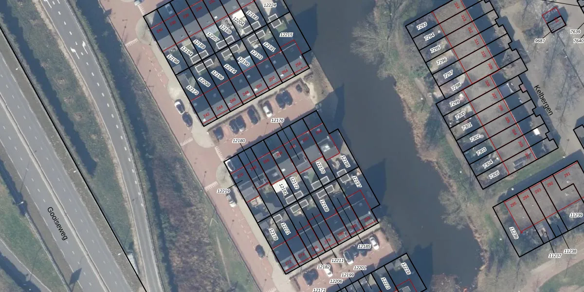 Gooise Kant 262 is gelegen op kadastraal perceel WPK02L12176. Deze kadastrale aanduiding is uniek en wordt gebruikt door het Kadaster om eigendomsrechten en andere zakelijke rechten vast te leggen. Het perceel maakt onderdeel uit van de kadastrale gemeente Weesperkarspel.