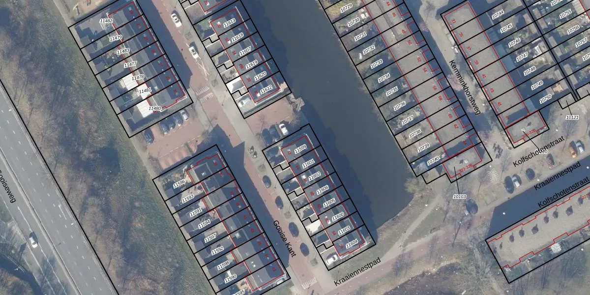 Gebruik de zoekbalk of klik op een perceel voor informatie over de adressen binnen dit perceel.
