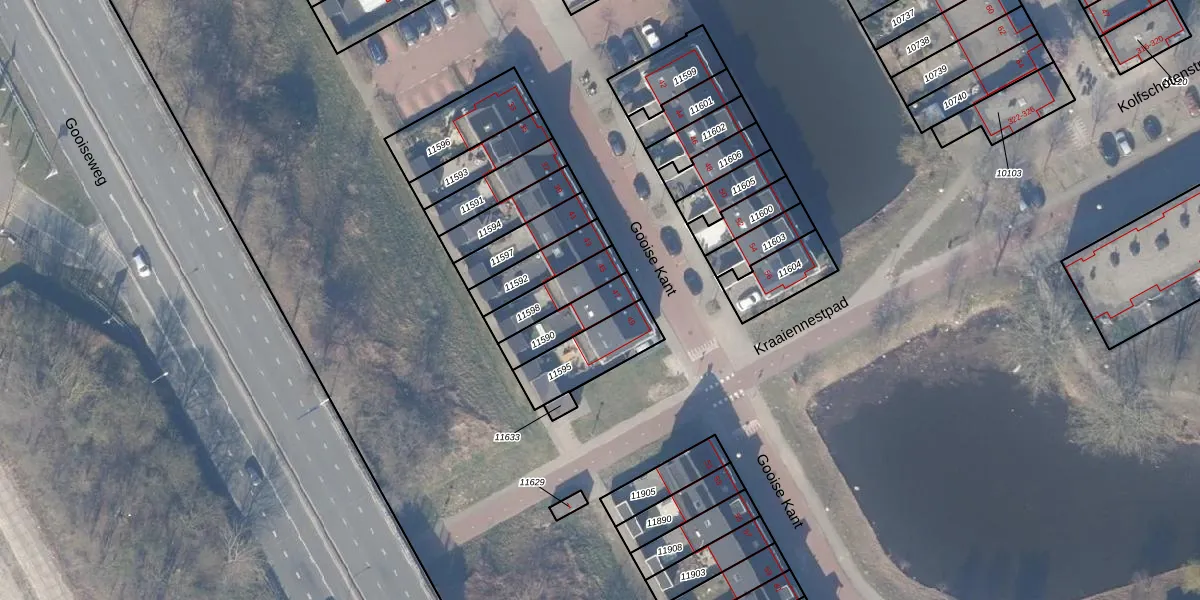 Gebruik de zoekbalk of klik op een perceel voor informatie over de adressen binnen dit perceel.