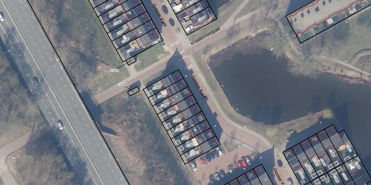 Gooise Kant 55 is gelegen op kadastraal perceel WPK02L11908. Deze kadastrale aanduiding is uniek en wordt gebruikt door het Kadaster om eigendomsrechten en andere zakelijke rechten vast te leggen. Het perceel maakt onderdeel uit van de kadastrale gemeente Weesperkarspel.