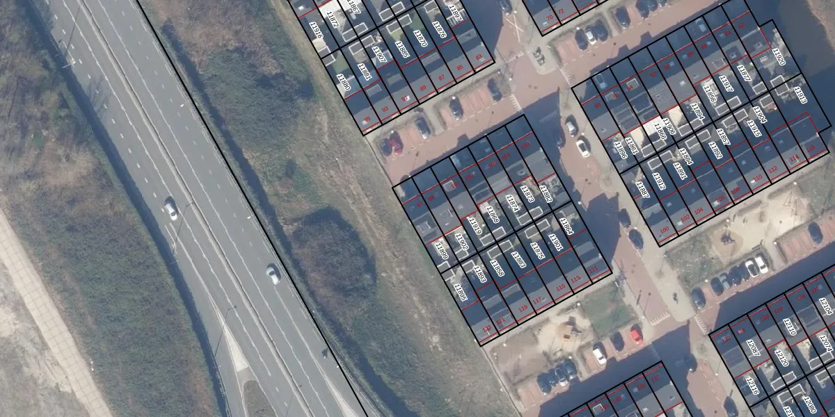 Gebruik de zoekbalk of klik op een perceel voor informatie over de adressen binnen dit perceel.