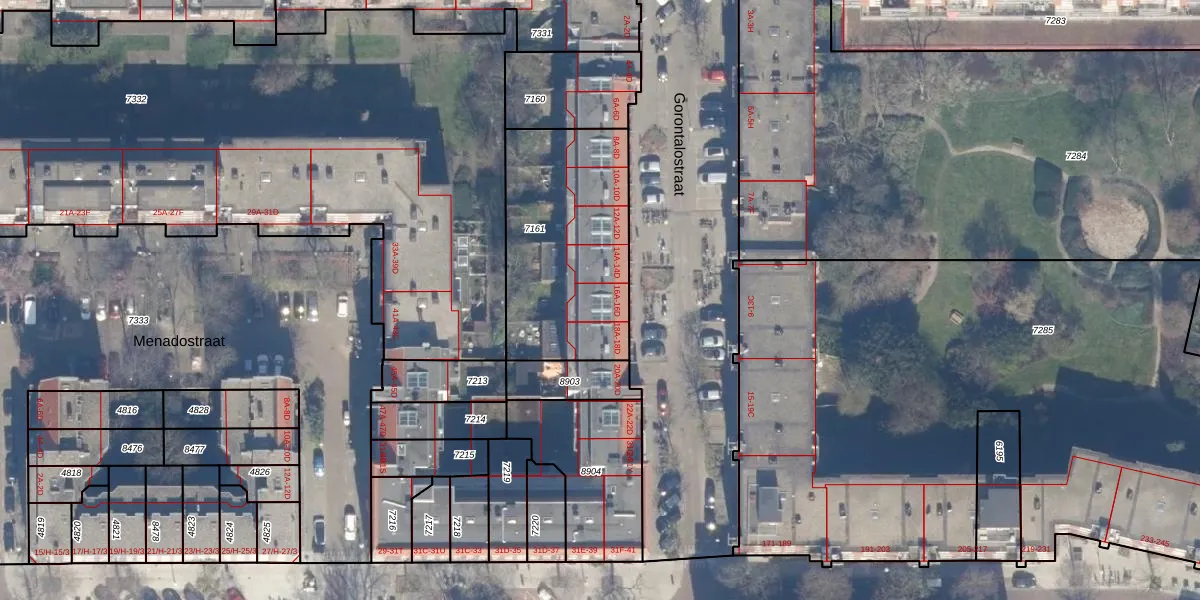 Gorontalostraat 16-B is gelegen op kadastraal perceel ASD19W7161. Deze kadastrale aanduiding is uniek en wordt gebruikt door het Kadaster om eigendomsrechten en andere zakelijke rechten vast te leggen. Het perceel maakt onderdeel uit van de kadastrale gemeente Amsterdam.