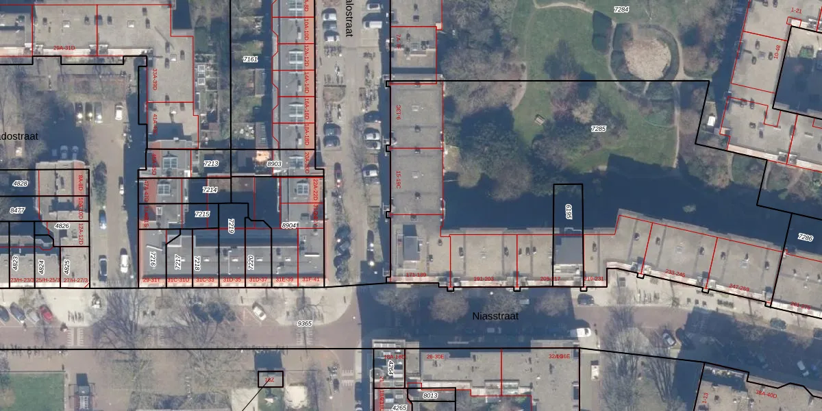 Het perceel waarop Gorontalostraat 19-B staat heeft een oppervlakte van 4200 m². Dit is een zeer groot perceel. De perceeloppervlakte wordt geregistreerd door het Kadaster. Gedetailleerde informatie over de maten van dit perceel kunt u vinden in het rapport Kadastrale kaart met maatvoering van Gorontalostraat 19-B.