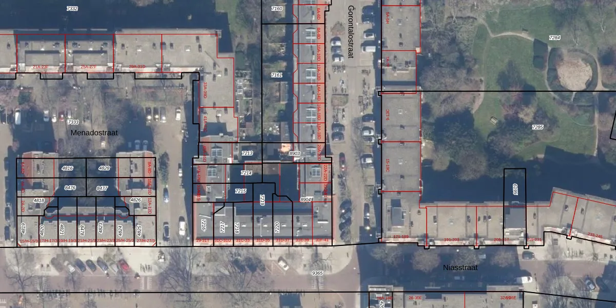 Het perceel waarop Gorontalostraat 20-C staat heeft een oppervlakte van 138 m². Dit is een middelgroot perceel. De perceeloppervlakte wordt geregistreerd door het Kadaster. Gedetailleerde informatie over de maten van dit perceel kunt u vinden in het rapport Kadastrale kaart met maatvoering van Gorontalostraat 20-C.
