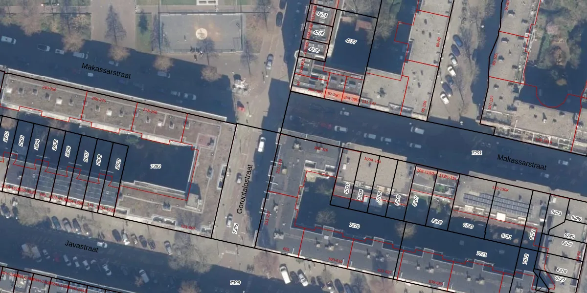 Gorontalostraat 215 is gelegen op kadastraal perceel ASD19W7570. Deze kadastrale aanduiding is uniek en wordt gebruikt door het Kadaster om eigendomsrechten en andere zakelijke rechten vast te leggen. Het perceel maakt onderdeel uit van de kadastrale gemeente Amsterdam.
